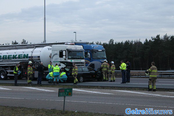 ARNHEM – Dinsdag aan het eind van de middag is er een ongeval tussen een auto en een vrachtwagen gebeurd op de A50 ter hoogte van knooppunt Waterberg. De bestuurder van de personenauto raakte hierbij lichtgewond.