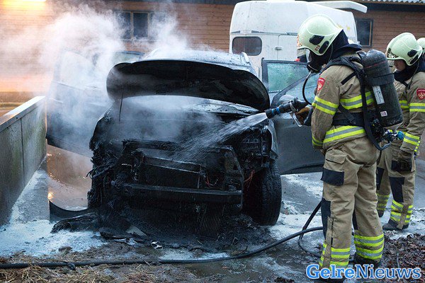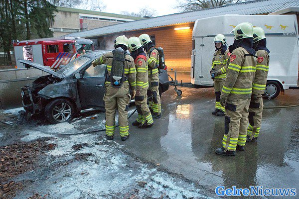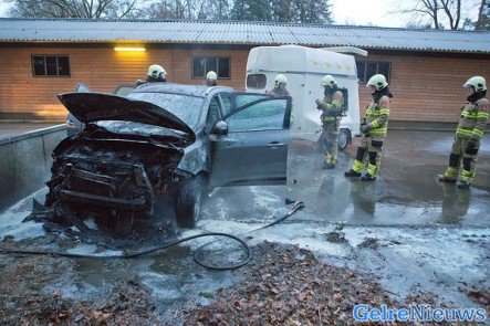 De gealarmeerde brandweer was snel ter plaatse, maar kon niet voorkomen dat de auto verwoest is door het vuur. De voorkant van de auto brandde volledig uit. De paardentrailer achter de auto raakte niet beschadigd. Hoe de brand heeft kunnen ontstaan is niet bekend.
