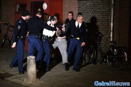 De 26-jarige werd even later in het trappenhuis gesignaleerd. Agenten renden erachter aan en konden de verdachte op de tweede verdieping aanhouden. Bij zijn aanhouding pleegde de man verzet. Hij is geboeid naar het politiebureau overgebracht en ingesloten voor verhoor. Het onderzoek is nog bezig. De politieagent doet aangifte van poging tot mishandeling.