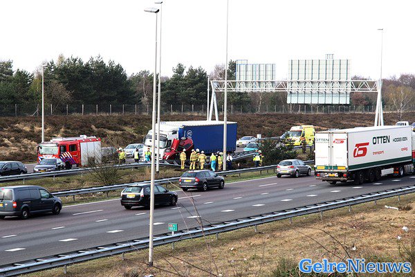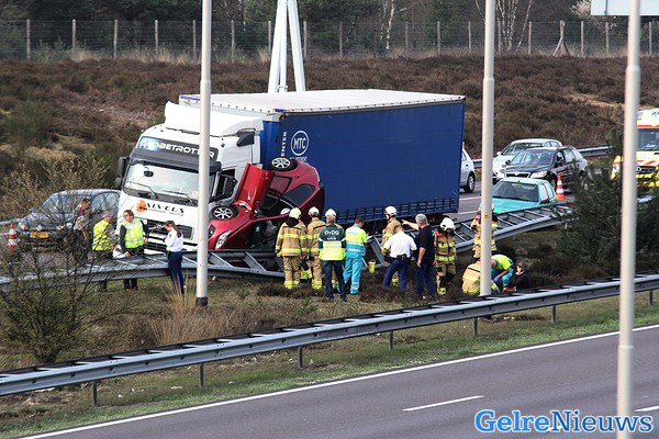 Het gebeurde op de snelweg A50 van Apeldoorn naar Arnhem ter hoogte van Hoenderloo.
