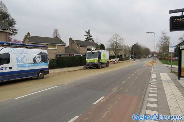 De gesprongen waterleiding zorgde dat veel zand over de weg kwam. Een veegmachine heeft het proberen schoon te maken, maar dat mislukte. Toen werd er besloten om de plaatselijke brandweer in te schakelen. Uiteindelijk hebben de spuitgasten het wegdek weer schoon kunnen krijgen.