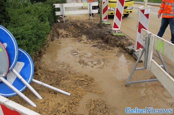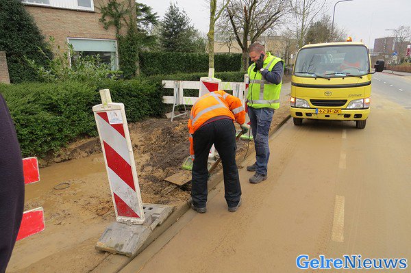 Huizen op de Reigerstraat hadden de hele ochtend en deel van de middag geen water door de gesprongen waterleiding.