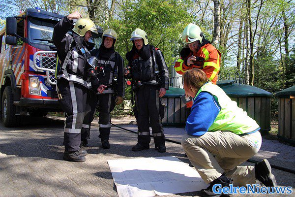 HOENDERLOO – De brandweer van Hoenderloo en Apeldoorn hebben woensdagmiddag samen met de BHV van vakantiepark Landal Miggelenberg geoefend op een brand.
