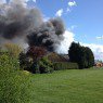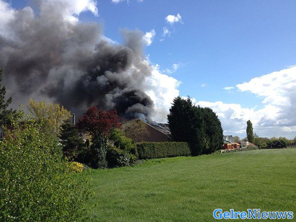 De brandweer kwam met groot materieel ter plaatse. De zwarte rook die vrij kwam bij de brand was in de wijde omtrek te zien.