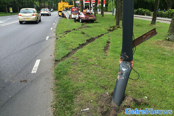 De man verloor iets na half vier met in de bocht de controle over zijn wagen. De Jaguar botste tegenover De Naald eerst tegen een lantaarnpaal en vervolgens tegen een boom.