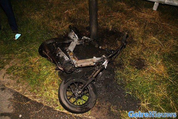 De eigenaar van de snorfiets had zijn bolide voorzien van kettingslot tegen een lantaarnpaal geparkeerd,Β om vervolgens met zijn vriend een stukje te gaan wandelen. Na terugkomst zagen zij een paar jonge mannen wegrennen en stond de snorfiets helaas in brand.