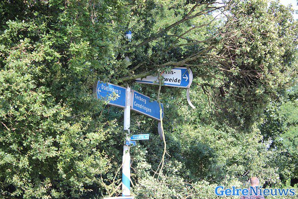 GAANDEREN – Een boom uit een bosperceel is vrijdagavond omgevallen tegen andere boom die vervolgens tegen de wegwijzer botste bij een kruising van de Rijksweg bij Gaanderen.