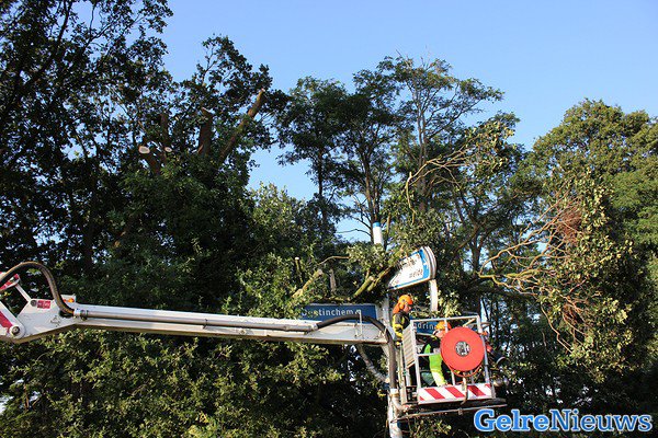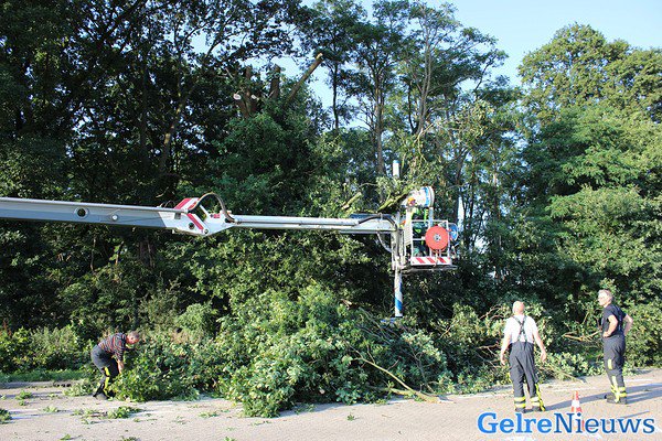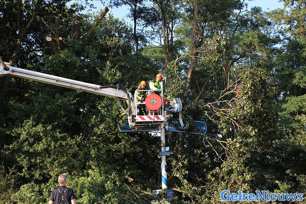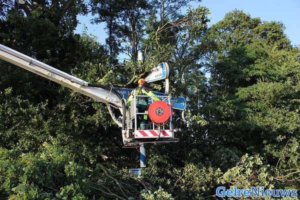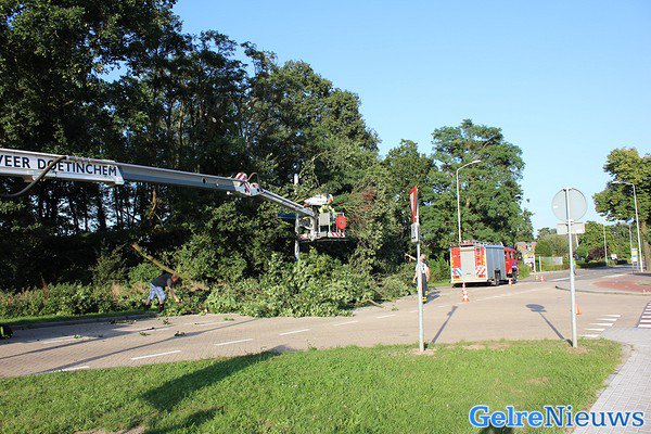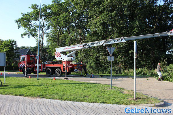 Voorbijgangers melde dit, waarna de brandweer ter plaatse kwam. Die hebben hulp ingeroepen van de hoogwerker uit Doetinchem. De politie heeft ruim drie uur lang de kruising afgesloten voor het verkeer.