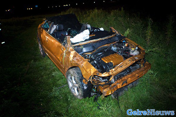 De automobilist komende vanaf Velp verloor ter hoogte van Rheden zijn macht over het stuur en raakte van de weg af. De auto sloeg meerdere malen over de kop en kwam in een weiland tot stilstand. De hulpdiensten waren snel ter plaatse. De Rhedense brandweerlieden hebben de automobilist uit het wrak gehaald, waarna die met zware verwondingen per ambulance is overgebracht naar het ziekenhuis.
