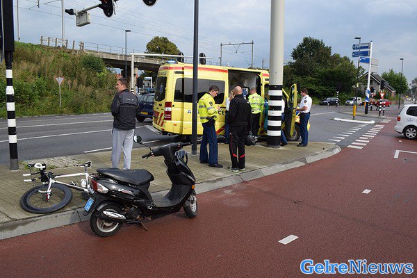 De scooterrijder kwam hierbij ten val en raakte gewond aan zijn hoofd. De traumahelikopter werd in eerste instantie opgeroepen, omdat het ernstig leek, maar deze kon worden geannuleerd. De fietser raakte niet gewond maar was wel geschrokken van de klap.