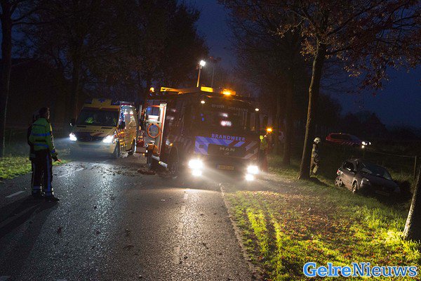 ANGERLO – Bij een eenzijdig verkeersongeval op de Ganzepoelweg in Angerlo is een auto vrijdagochtend tegen een boom gevouwen, nadat die van de weg raakte. De bestuurder raakte zwaargewond.