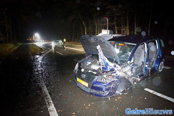 Het ongeluk gebeurde iets na 17 uur. Hoe het precies heeft kunnen gebeuren is niet bekend. In de blauwe auto zat een gezin. Moeder, vader, zoon en dochter zijn met onbekende verwondingen overgebracht naar het ziekenhuis. In de andere auto zat een ouder echtpaar. Zij kwamen met de schrik vrij.