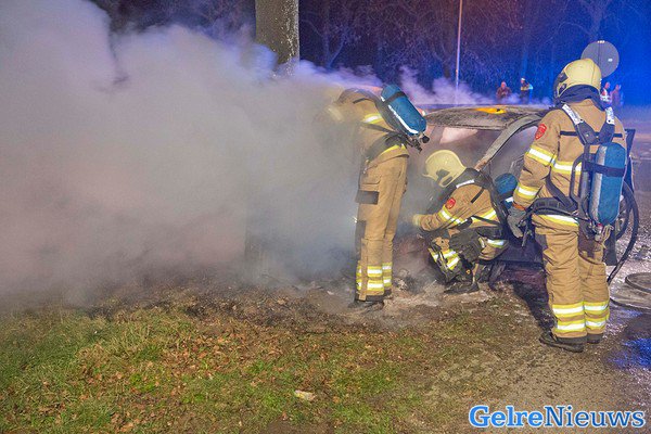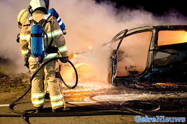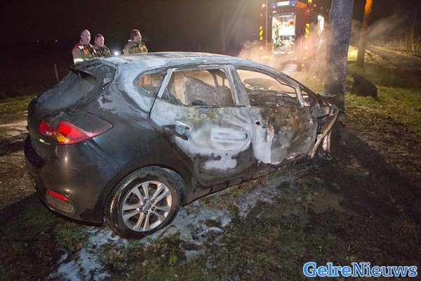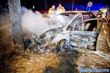 Auto volledig uitgebrand na ongeval Angerlo