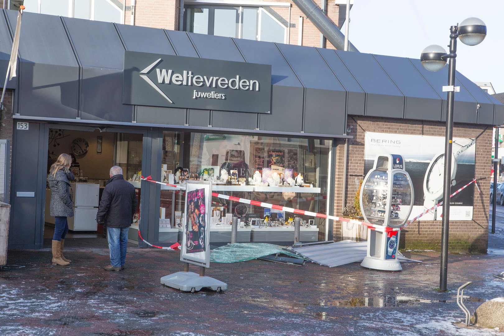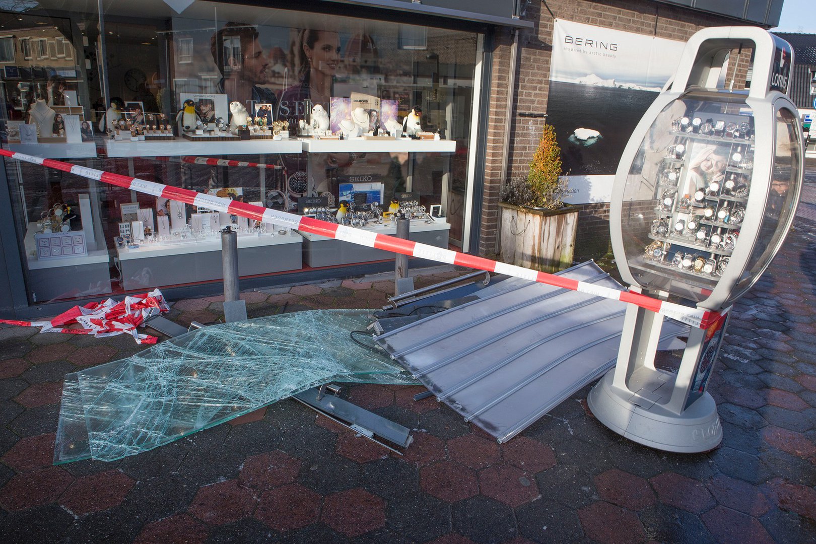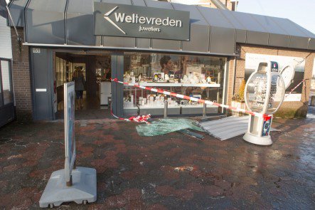 Eigenaar Erik Weltevreden meldt dat de Golf het rolluik een aantal keren heeft geramd en toen vast kwam te zitten. Na een aantal keren proberen kwam de Golf weer los. De persoon sloeg met een hamer een vitrine in en griste de spullen weg en deed die in een tas. De schade is groot, maar Weltevreden zegt dat de zaak gewoon open gaat vandaag.