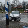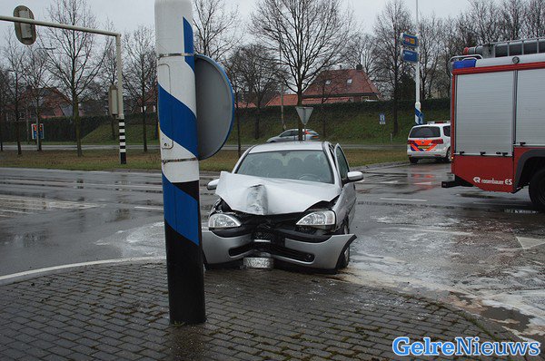 Rond 13.20 uur kwam het voertuig tegen de verkeerszuil tot stilstand. De brandweer heeft beide inzittenden bevrijdt. De vrouwen zijn met onbekend letsel overgebracht naar het ziekenhuis gebracht.