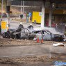 Het vuur ontstond nadat een auto een tankzuil van een LPG-installatie omver had gereden. Dat gebeurde toen meerdere auto’s met elkaar in botsing kwamen. Wat die botsing veroorzaakte, is nog niet bekend. Een aantal mensen die in het tankstation aanwezig waren, zijn in shock.