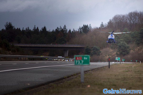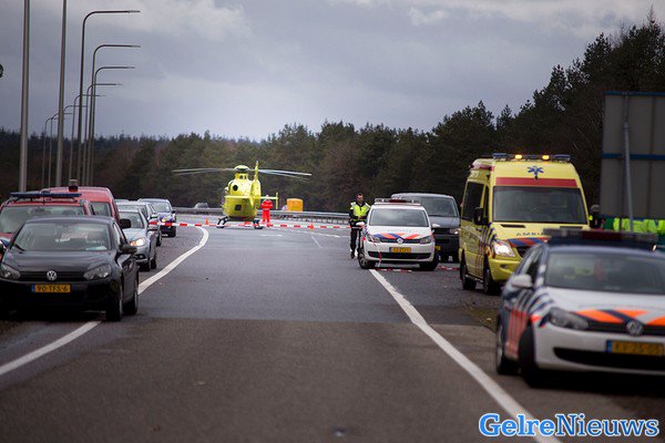 De snelweg was vanwege de brand in beide richtingen tijdelijk afgesloten.