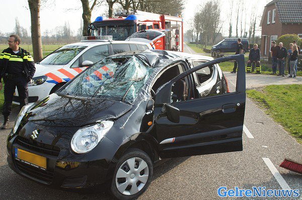 Auto over de kop en gelanceerd bij ongeval in Beek