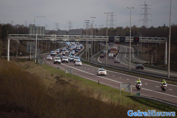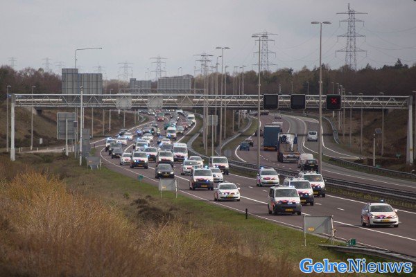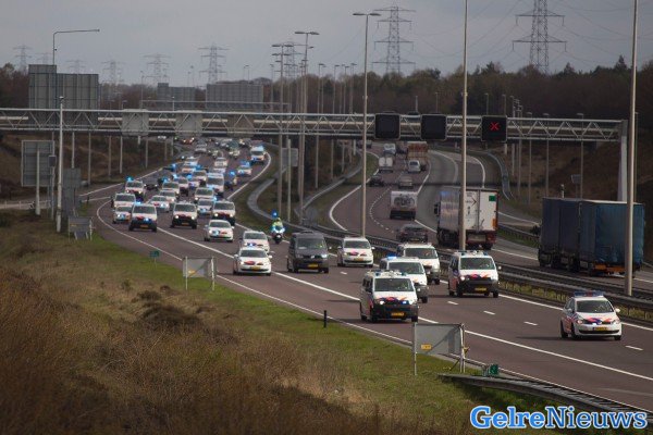 De politie voert de hele dag actie voor een betere cao. De actievoerders rijden in colonne in dienstvoertuigen met een lage snelheid over de hele breedte van de rijbaan rijden. Volgens Rijkswaterstaat moeten weggebruikers rekening houden met continue files van 3 tot 5 kilometer.