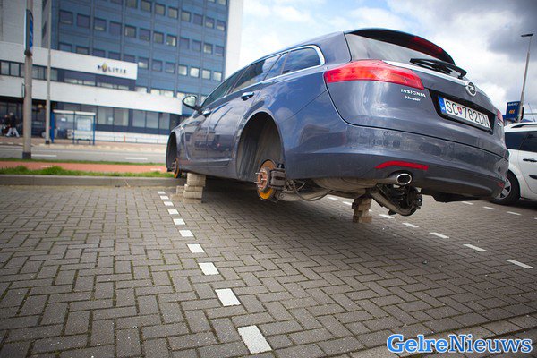 ARNHEM – Maandag was er een melding gedaan bij de politie over twee wielen die gestolen waren onder een auto voor het politiebureau in Arnhem. De politie ondernam geen actie; nu blijken alle vier de wielen eraf te zijn gestolen.