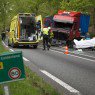De vrachtwagen heeft grote schade opgelopen. De chauffeur is met onbekende verwondingen overgebracht naar het ziekenhuis. De weg is tot ruim 18.30 uur dicht geweest.