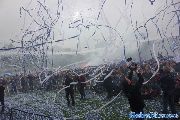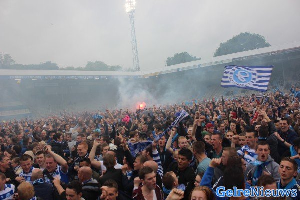 De Graafschap won met 1-0 van FC Volendam bij de uitwedstrijd. Na drie seizoenen is de club weer terug op het hoogste niveau en dat vierden talloze uitzinnige supporters in de Vijverberg mee met de voetballers.