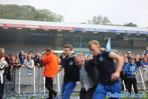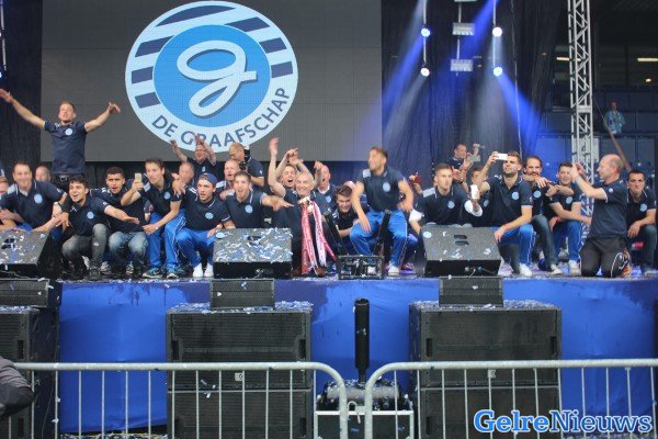 DOETINCHEM – Zondagavond zijn de spelers van De Graafschap gehuldigd in hun stadion de Vijverberg in Doetinchem. De club promoveert naar de eredivisie.
