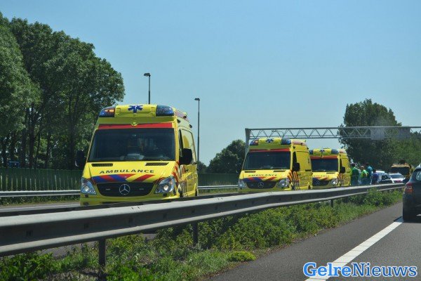 Op de linkerrijstrook kwamen meerdere auto’s in botsing met elkaar. Diverse ambulances werden opgeroepen en drie ambulances reden met spoed vanaf het incident naar het ziekenhuis in Arnhem. De officier van dienst van de GGD coordineerde de actie.