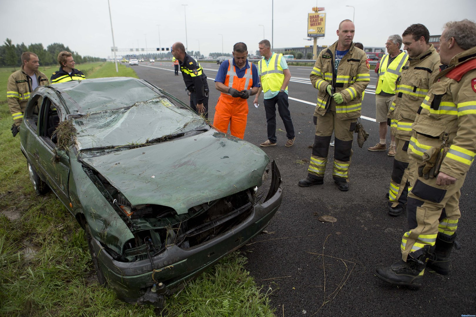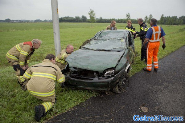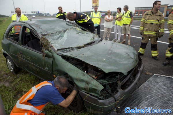 Het ongeluk gebeurde rond 10.30 uur. De automobilist kwam door onbekende oorzaak tegen zijn voorganger aan. De auto ging vervolgens tollen, waarna hij meerdere malen over de kop is geslagen. De auto kwam op zijn kop in een sloot langs de weg tot stilstand.