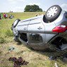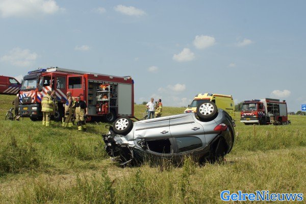 Het gebeurde rond 15.30 uur. Door een stuurcorrectie vloog de auto van de weg af. De auto zou meerdere malen over de kop zijn gegaan. Het voertuig kwam op de kop tot stilstand in de weiland naast de snelweg.