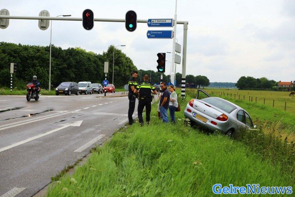 Het gebeurde rond 13.50 uur op de Oostsingel in Duiven bij de stoplichten met de Vergertlaan op de t-splitsing. Een medeweggebruiker voor hem remde hard toen het verkeerslicht naar oranje ging. De bestuurder kon niet meer op tijd remmen en draaide zijn stuur naar rechts. Hij kwam in een droge sloot tot stilstand.