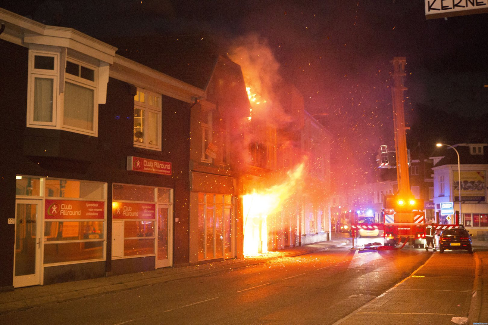 Het vuur is ontstaan in de biologische winkel Marcus. Vanwege de brand zijn zo’n 30 appartementen ontruimd. De plaatselijke Chinees heeft de bewoners opgevangen in het restaurant.