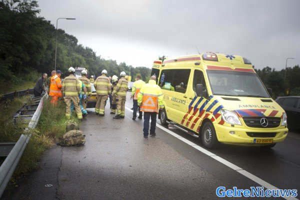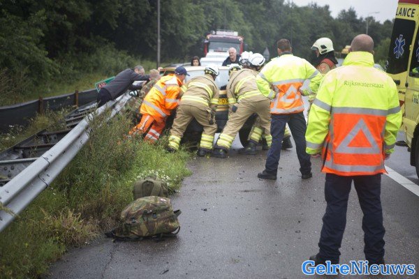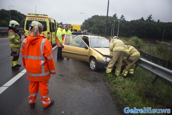 Het gebeurde even voor 8.00 uur. Door nog onbekende oorzaak raakte de vrouw de macht over het stuur van de auto kwijt en kwam tegen de vangrail tot stilstand. De vrouw moest uiteindelijk bevrijd worden door de brandweer. In de auto zaten ook haar man en dochter. Zij raakte niet gewond aan het ongeluk.