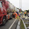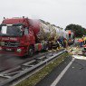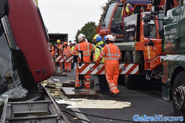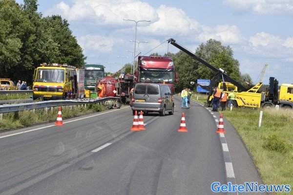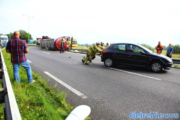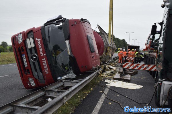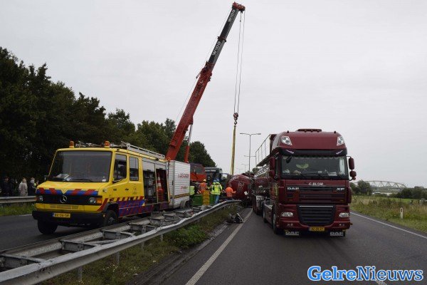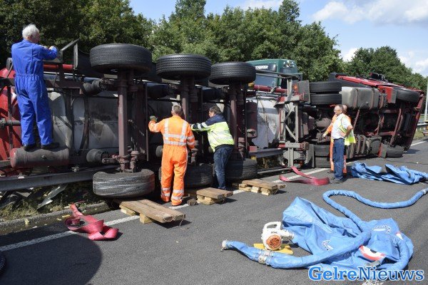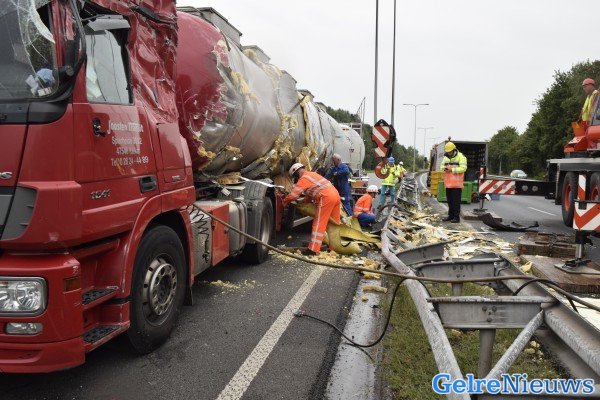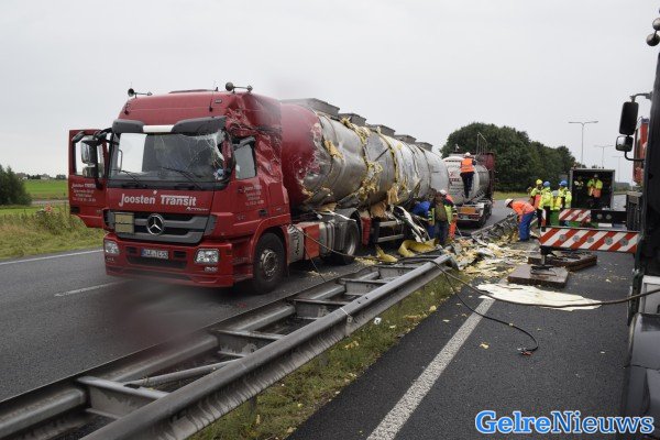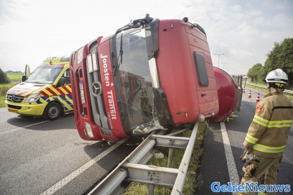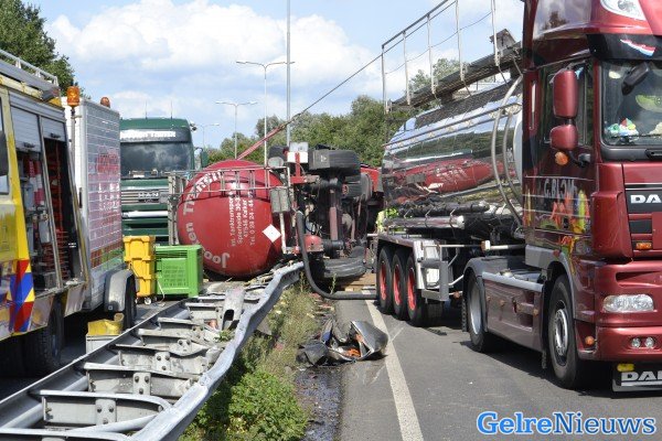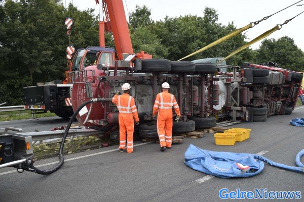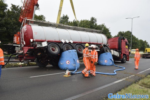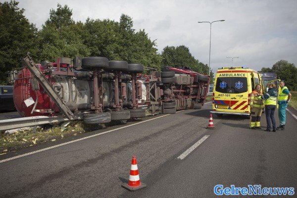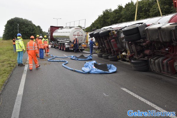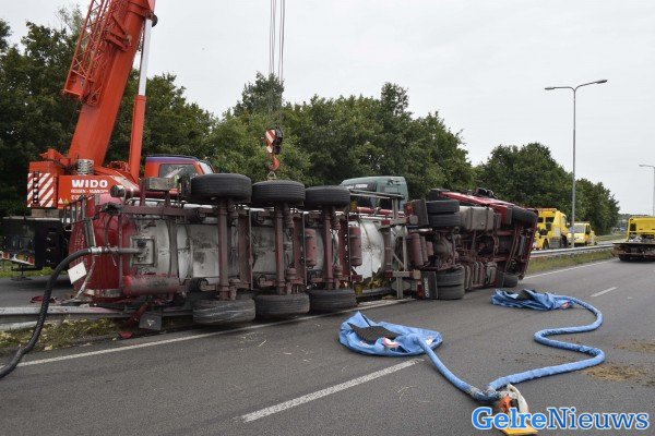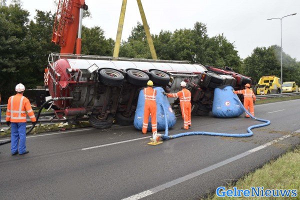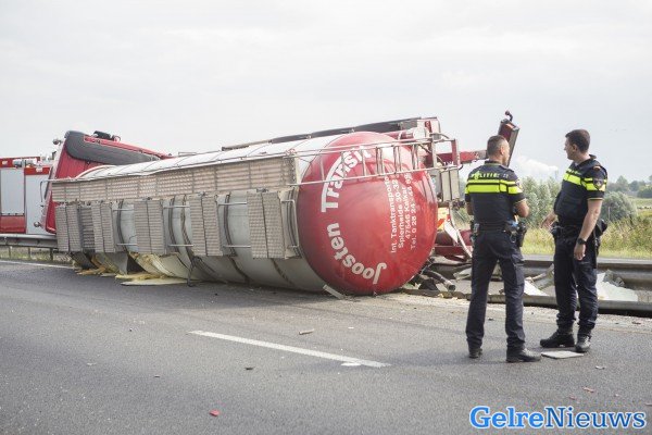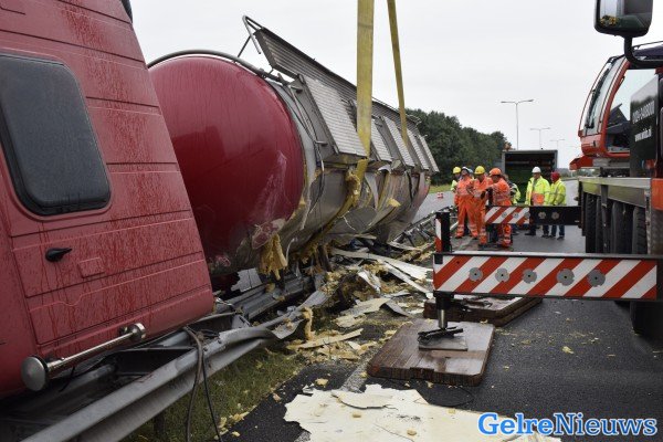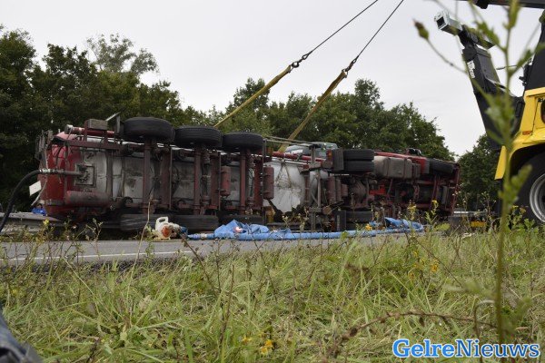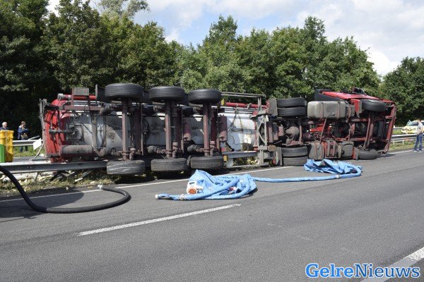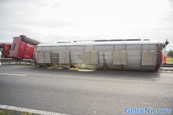 Het gebeurde rond 12.00 uur. Alle rijstroken op de weg zijn tot 20.00 uur afgesloten geweest. Inmiddels is op beide richtingen weer één rijstrook vrijgegeven. De tankwagen was geladen met 25 ton bio olie. Er lekte geen vloeistof uit het voertuig.