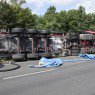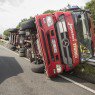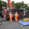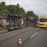 Gekantelde vrachtwagen op de Pleijweg N325 Arnhem