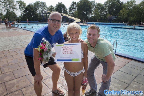 De 9-jarige Rhedenaar Kylie Bransberg was de gelukkige. Ze kreeg van badmeester Rogier Wensveen een gratis zwemabonnement aangeboden voor volgend jaar. Ook kreeg ze nog een grote zak snoep van Tom den Dunnen, eigenaar van de sportcafé De Hangmat. Als slot kreeg ze ook nog dezelfde dat wat gaan eten maar haar vader en moeder, om de mooie zonnige dag af te sluiten.