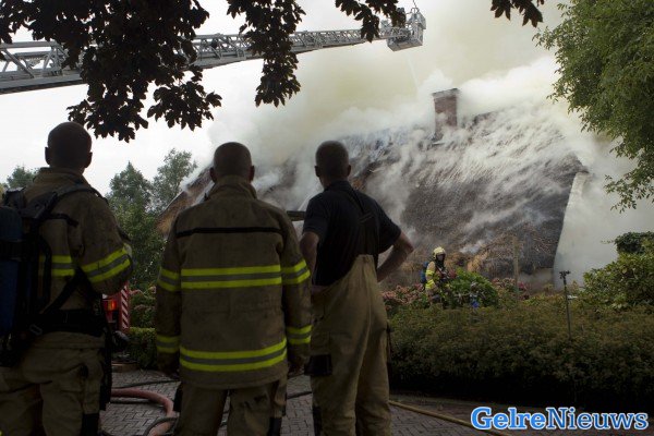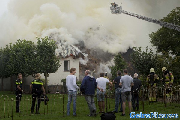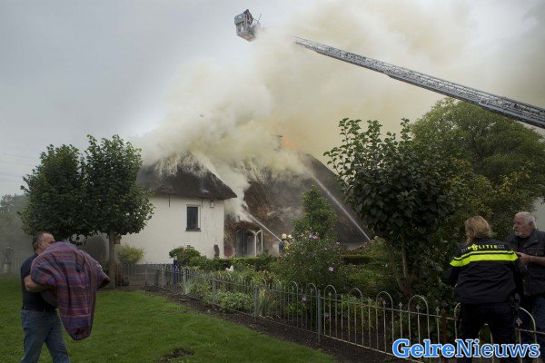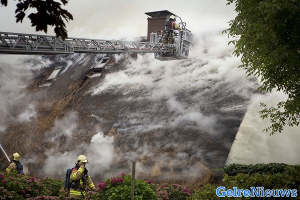Naast de blusgroepen van de brandweer van Arnhem, Elst en Kootwijkerbroek is ook Velp opgeroepen. Bewoners hebben nog met man en macht hun spullen weten te redden. De woonboerderij lijkt echter niet meer te redden.