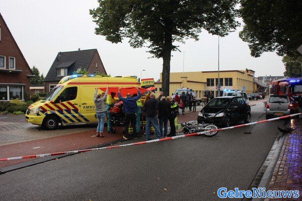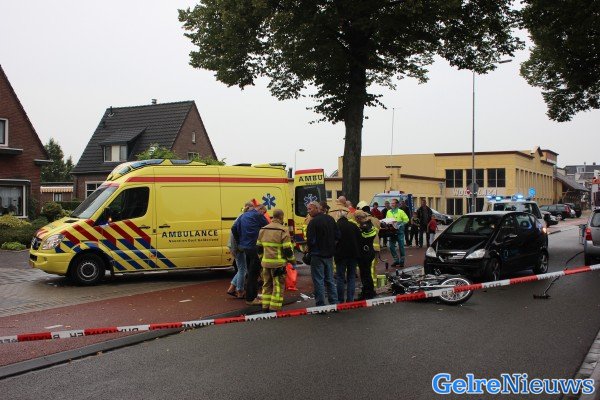 De motorrijdster is gestabiliseerd en naar het ziekenhuis afgevoerd. De bestuurder van de auto is met de schrik vrij gekomen.