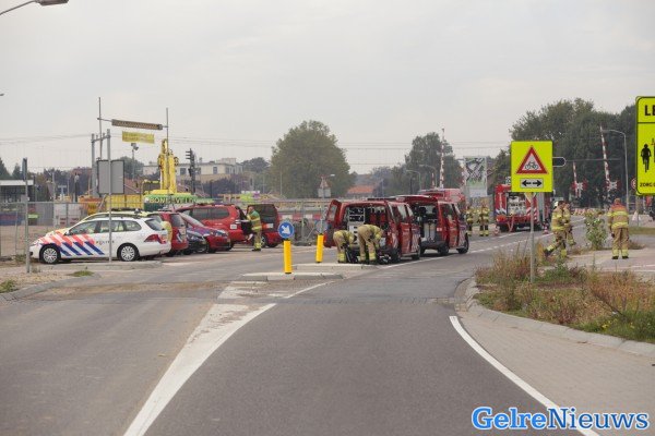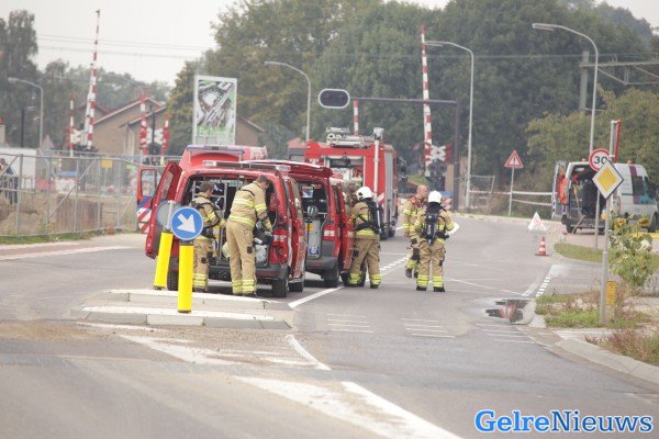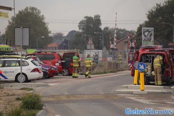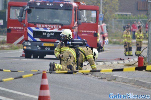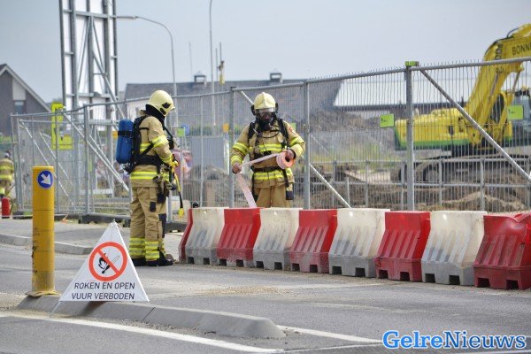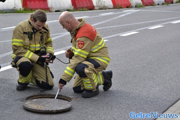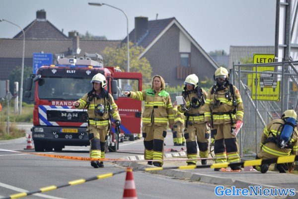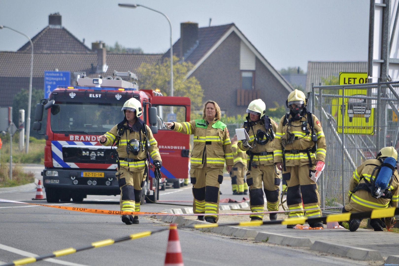 Bij het station in Elst wordt een tunnel gegraven en is een gasleiding afgedicht. Waarschijnlijk is die weer gaan lekken. Brandweerlieden verrichtten metingen in putten om de concentraties vast te stellen.