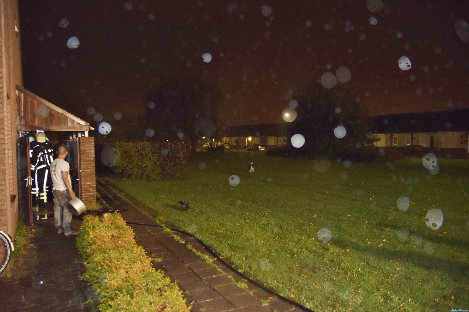 Hoewel de brandweer van Duiven snel ter plaatse was had de bewoner zelf het vuur al geblust. De brand was ontstaan in een overkapte bergruimte direct naast de woning. De brandende gasfles had al gaten geslagen in de dakbedekking. Met gevaar voor eigen leven kreeg de bewoner de brand onder controle.