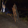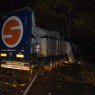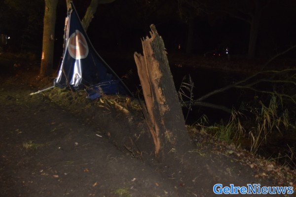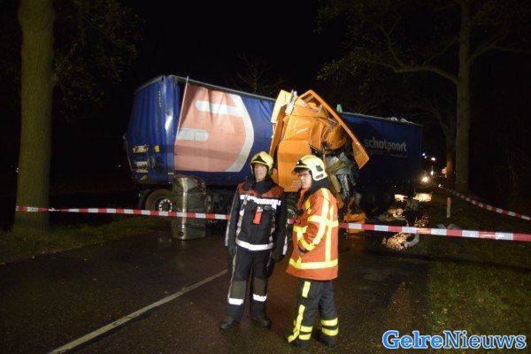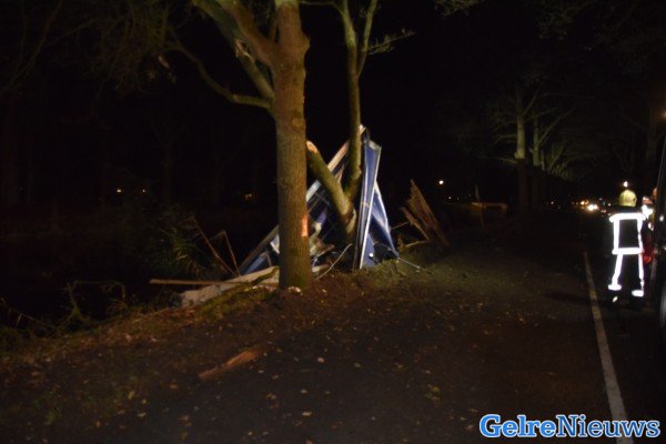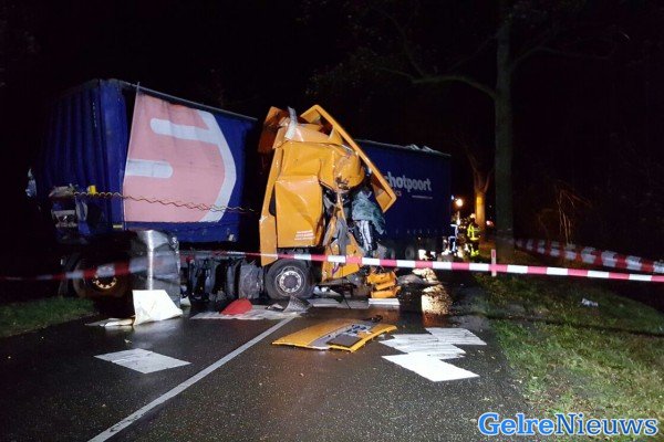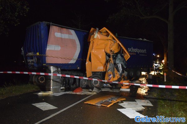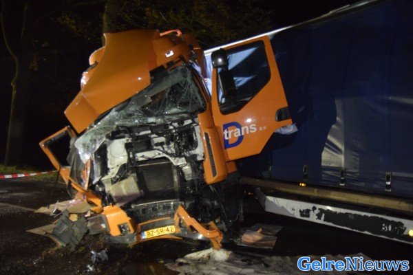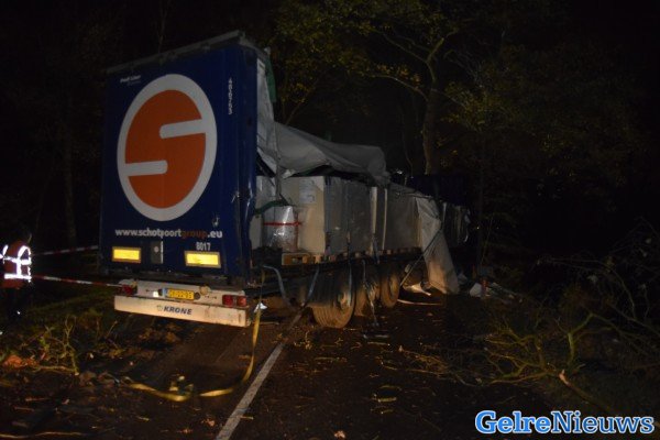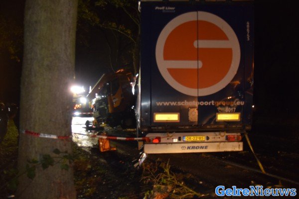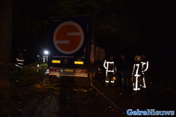 Het gaat om een vrachtwagen die de macht over het stuur is kwijt geraakt. De vrachtwagen is in de zachte berm terecht gekomen en is tientallen meters verder gegleden. Hij heeft een aantal bomen geraakt en zelfs 1 boom volledig uit de grond gereden.