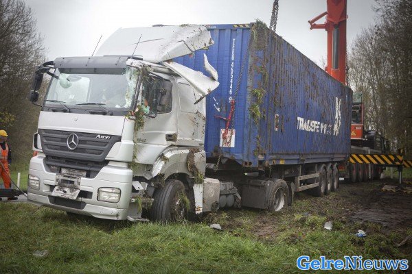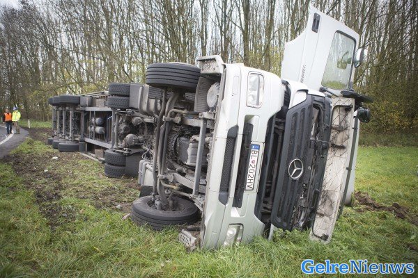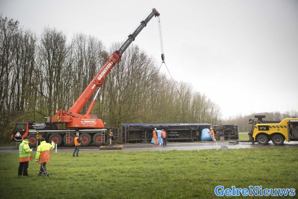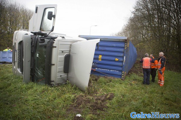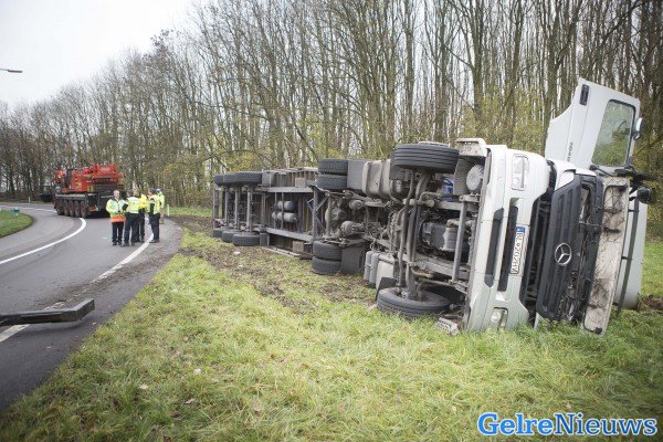 RESSEN – Op verbindingsweg van de A15 Gorinchem – Nijmegen naar het knooppunt Ressen richting de A325 is dinsdagochtend een vrachtwagen gekanteld. De chauffeur raakte niet gewond.