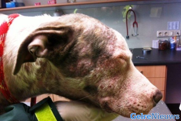 Agenten van de dierenpolitie troffen de pup eind oktober voor de eerste keer aan met een kale kop die onder de korsten zat. Hij krabde zichzelf tot bloedens toe en kneep voortdurend met zijn ogen. De eigenaar kreeg opdracht om naar een dierenarts te gaan, die vaststelde dat hij verschrikkelijke jeuk had, last had van rode vlekken over het hele lichaam, korsten en haaruitval. Ook bleken zijn oogjes ontstoken. De eigenaar moest de pup met speciale shampoo gaan wassen en zijn ogen behandelen met zalf. Vier weken later werd hij terugverwacht bij de dierenarts.