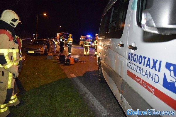 De bestuurder van een personenauto zag op de kruising een taxibusje van de Regiotaxi over het hoofd. De bestuurder van de personenauto is door de brandweer bevrijdt. De bijrijder raakte minder ernstig gewond maar is voor controle ook naar het ziekenhuis vervoerd.
