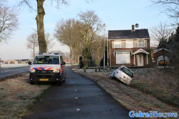 De bestuurder -op leeftijd- had te laat door dat hij op het fietspad zat. De weg was te smal waardoor hij de berm raakte en vervolgens in een naastgelegen slootje terecht is gekomen door de gladheid.