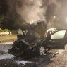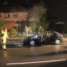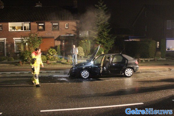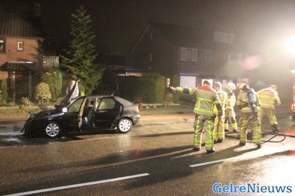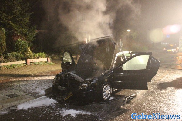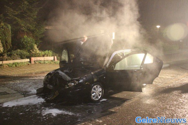 De bestuurder is uitgeweken naar de bushalte om de weg vrij te houden. De oorzaak is mogelijk kortsluiting. De auto heeft flinke schade opgelopen.