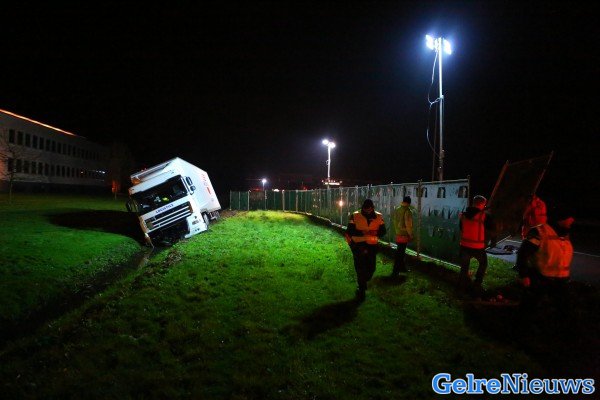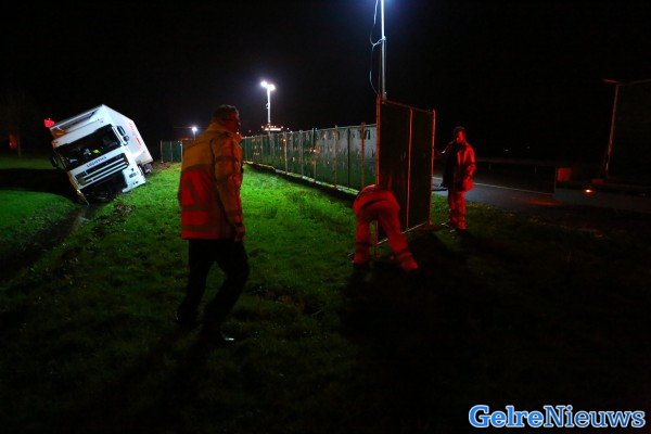 HOEVELAKEN – Een vrachtwagen is in de nacht van maandag op dinsdag in een slootje langs de A1 bij Hoevelaken terecht gekomen. De chauffeur bleef ongedeerd.