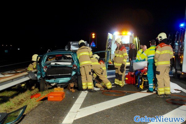 ELLECOM- Bij een ernstig ongeval zaterdagavond op de A348 te hoogte van Ellecom is een persoon ernstig gewond geraakt. Ook werd een gloednieuwe politieauto total los gereden door een onoplettende bestuurder.