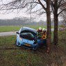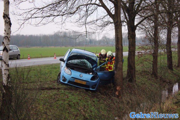 Het gebeurde rond 13.30 uur. Door nog onbekende oorzaak raakte de vrouw op de Europaweg N18 de macht over het stuur kwijt en kwam tegen boom tot stilstand. De zoon kon ongedeerd de auto uitkomen. De vrouw werd bevrijdt door de hulpdiensten. Ze is voor controle overgebracht per ambulance naar het ziekenhuis.