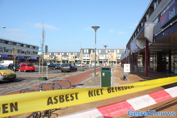 DIEREN – Het Callunaplein in Dieren is afgesloten vanwege vondst van asbest in luifels van aangrenzende winkels. Alle winkels zijn dicht, alleen de Emté supermarkt is nog open.